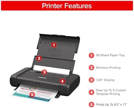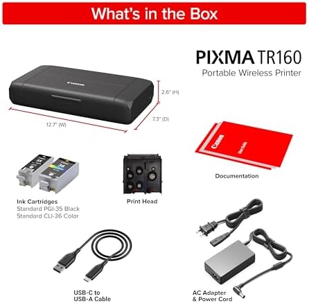 Canon Refurbished PIXMA TR160 Wireless Portable Printer, 50-Sheet Paper Tray and 1.44″ Display